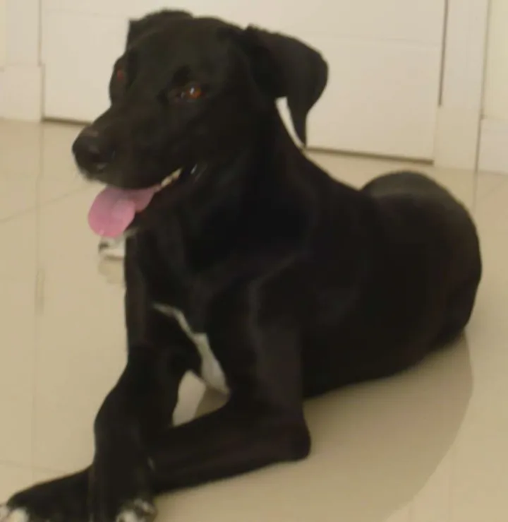 Âmbar foi resgatada em Barreiros São Jose. Estava na ra doente com piometra magra e rodeada de cachorros. Mesmo morando em apto levei-a comigo. Foi castrada, vacinada, desverminada. Aproximadamente 2 anos. Pesa 26 kg Gosta de correr e brincar, espera por um lar com espaço.
