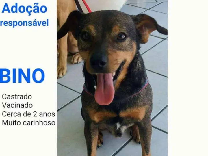 Bino era um morador das ruas. Foi resgatado junto do seu amigo Pedro. Pedro já ganhou um lar. Mas o Bino não. Faz um ano que aguarda uma FAMÍLIA para dar todo seu carinho e amor. Ele é um cãozinho muito amoroso, que se da bem com outros cães e adora um colinho. Baixotinho de 10 kilos.