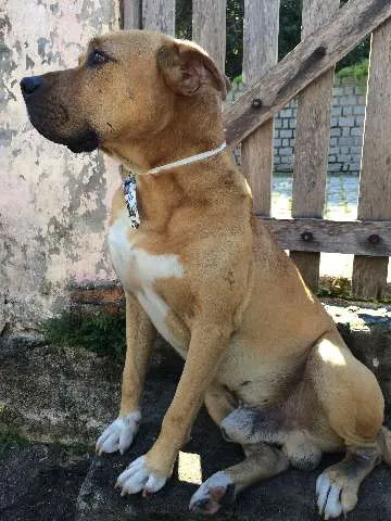 Fred apareceu na minha rua no início da Copa e ninguém o procurou. Não posso ficar com ele, pois já tenho um cachorro de grande porte e os dois não se entenderam. Ele é um "bebe" grande, está trocando os dentes agora, mas não sei a idade ao certo. Ele é manso, mas protege bem o dono. Está atualmente em um terreno onde não mora ninguém, mas precisa de atenção e carinho. É um cão incrível daqueles que "falam" com os olhinhos (ver na foto).