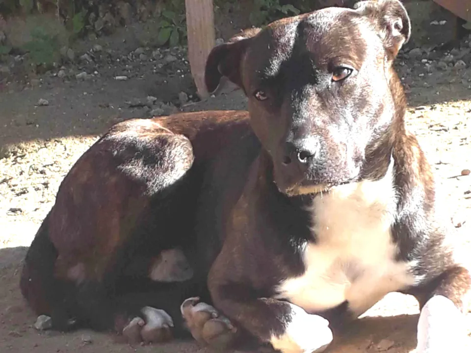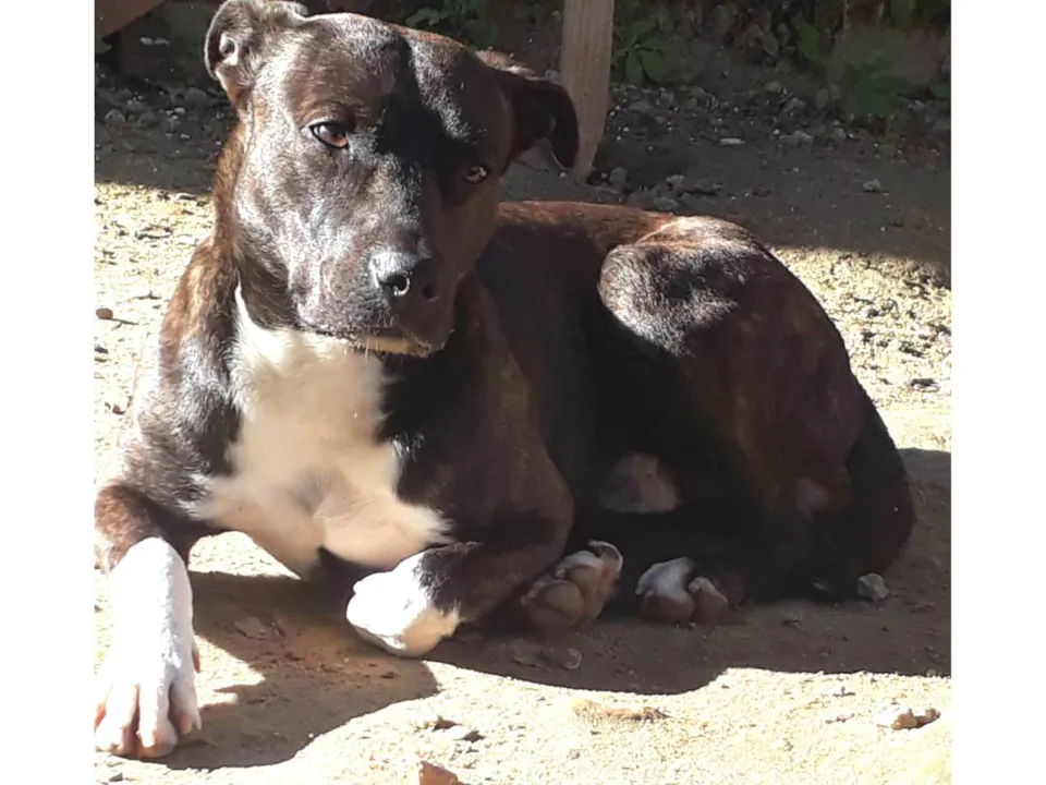 Adotei o Jhow quando filhote, pois ninguém o queria e tive medo de que fosse parar na rua. Peguei amor por ele e achei que poderia criá-lo, mas não tenho condições financeiras. Ele tem o porte grande e é muito ágil, sempre correndo pelo terreno. Ele está precisando comer cerca de 500g de ração por dia, e não estou dando conta de manter, por isso está ficando magro. Não é castrado.