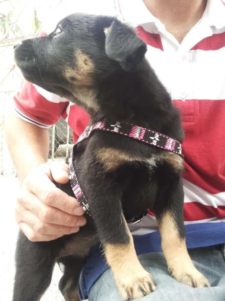 segunda a veterinária ela tem quase 05 meses é muito dócil, adora crianças de pelo curto, é preta com marrom quase uma rottweiler