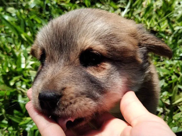 Ela tem 45 dias de vida, é muito esperta e calma, bravinha com estranhos (o que é engraçado, já que é minúscula e peludinha), parece um ursinho de tão fofa e gordinha. Será porte médio, assim como os pais, acreditamos que não passe dos 15kg.
