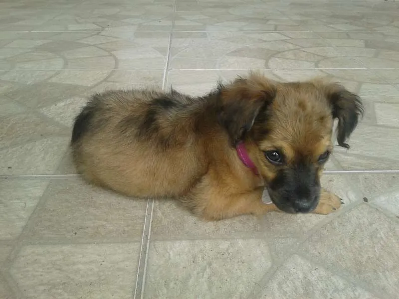 Cachorrinha vira-lata foi abandonada em nosso quintal no dia 25 de dezembro. Acreditarmos ter uns 2 meses de idade, mas não sabemos ao certo. Muito carinhosa e brincalhona. Demos banho e tratamos dela. Está livre de pulgas e carrapatos.