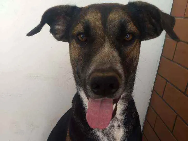 Nós chamamos ele de filé, encontrei vagueando próximo ao shopping Itaguaçu em São José SC , ele é dócil, não sabe nem fazer xixi levantando a pata, bem brincalhao, demos as vacinas nele, inclusive contra raiva, está precisando de um lar