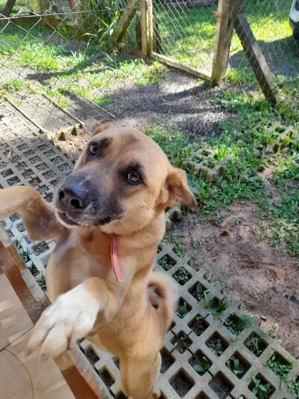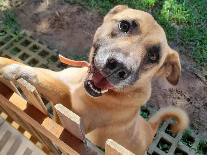 Nell é uma vira-latas de cor caramelo, linda, querida e muito grata aos seus cuidadores. Gosta de carinho e de brincar.