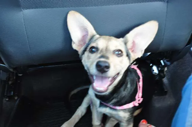 Cadela com aprox. 10 meses, tem uns 30 cm altura 50cm comprimento, contando com a cauda.