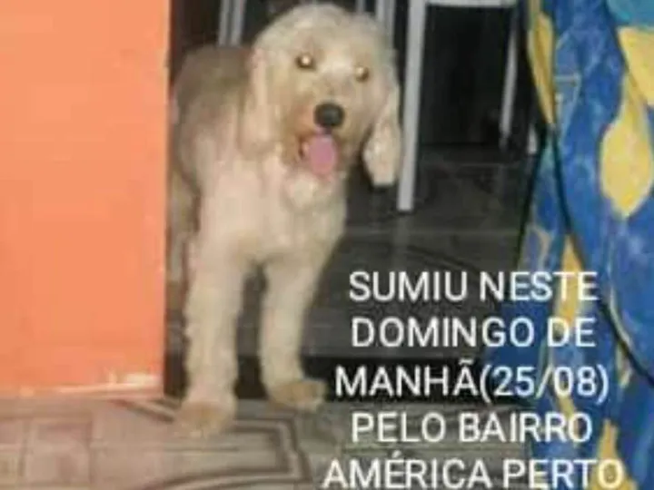 Lincoln, poodle Cockspanell, branco champanhe. Sumiu na manhã deste domingo 25/08/2019 perto da PETROBRAS da Rua Acre, e vizinho à ENSURB. Lincoln tem 9 anos e é obediente e carinhoso, obedece e cumprimenta qualquer pessoa que falar com ele. OFEREÇO RECOMPENSAR PARA QUEM ACHÁ-LO OU SOUBER O PARADEIRO DELE.
