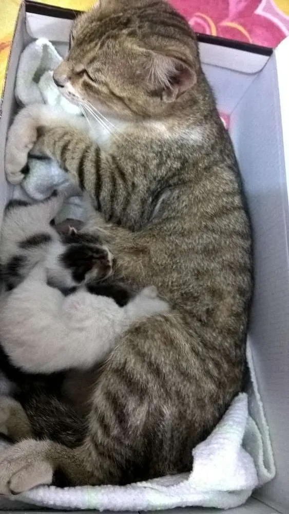 Encontrei mãezinha com 3 bebezinhos recém nascidos, estava chovendo muito e para não deixa los morrerem levei para casa. Mas não tenho como permanecer com eles, já tenho gata e meu apto é pequeno demais. Por favor alguém que possa ajuda los URGENTE.