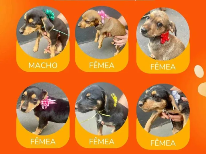 Filhote de Pincher com sem raça definida de pequeno porte. Doação urgente! Meu irmão trabalha viajando e precisa doar os bichinhos com urgência. Nos ajude a encontrar um lar para esses anjinhos. Estão com 45 dias.
