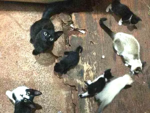 São 5 gatos no total: 4 fêmeas e um macho. Sendo duas, ainda bebês.