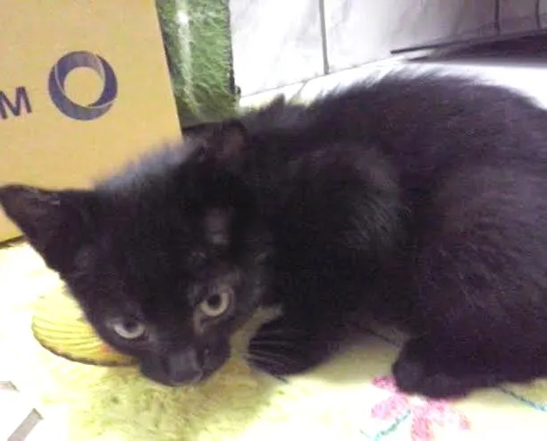 Recolhi o Theo da rua, tava doente e mto magrinho. Hj já recuperado preciso encontrar um lar pra ele. è pretinho e super brincalhão. Está saudável e até gordinho para 2 meses e meio.