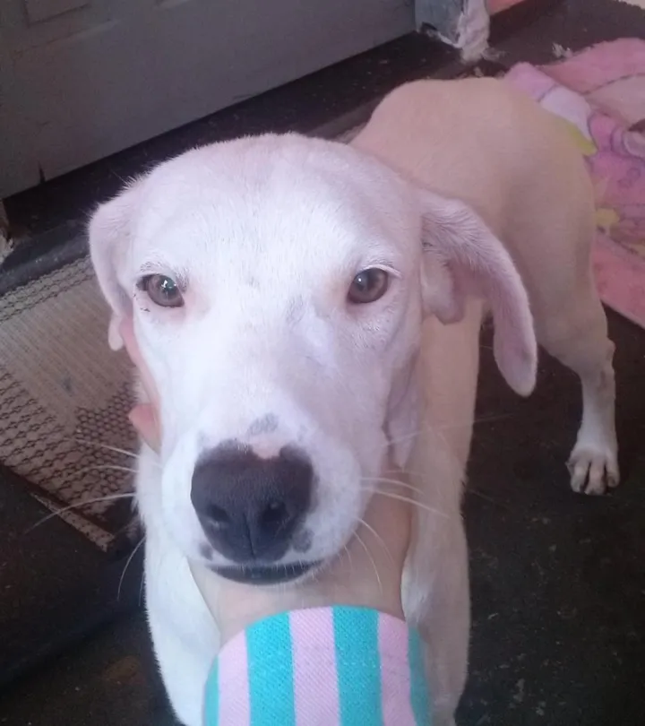 Docil!!Encontrei essa cachorrinha na porta de minha casa,muito magra,assustada ia morrer atropelada.