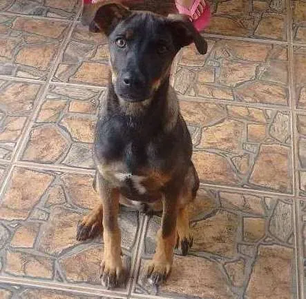 Achei o cachorro na rua , dei comida e água e ele não quis mais sair daqui , não posso ficar com ele , minha casa é pequena e tenho uma criança , ele é muito carinhoso e brincalhão.