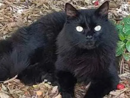 Preto, adulto, castrado, pelagem média, mas com rabo, peito e rosto bem felpudo. É arisco, tem medo de barulho e locais movimentados. Marca de castração azul na orelha esquerda. É um gato muito bonito.