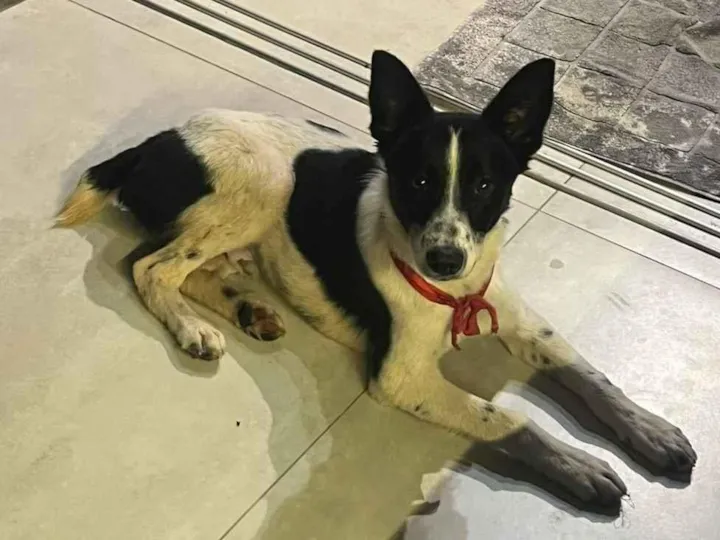 Encontrei perdido dentro do condomínio Quintas da Boa Vista - Atibaia - Estrada dos Perines. Estava limpinho ( apenas as patas sujinhas de caminhar ou fugir)n , cheiroso e com uma fita vermelha amarrada no pescoço. Como estava um dia muito quente ( Carnaval ) resgatei para dar agua e alimentação. Dócil, carinhoso , filhote ( menos de 1 ano) e brincalhão. Como tenho 2 pugs ( 8 e 9 anos ) , e eles estão bem estressados com a presença do visitante.