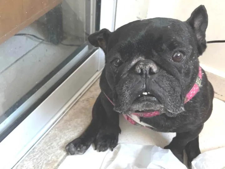 Maya é uma cachorrinha extremamente dócil. Bulldog francês preta com algumas listras marrom. Ela está idosa e não se adaptou à vida em apartamento, está com as patas traseiras fracas e precisa de espaço para andar e recuperar a mobilidade.
