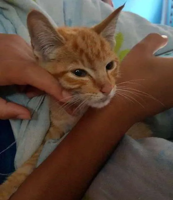 Encontrei ele no telhado do meu serviço com fome frio e um pouco debilitado cuidei dele levei no veterinário e agora procuro um lar para meu amigo