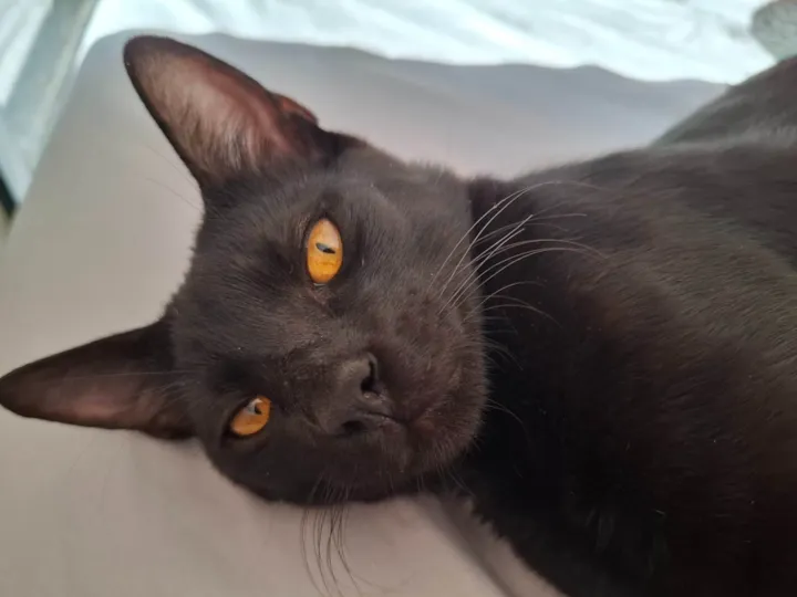 Ajude-nos a encontrar o nosso amado Banguela, que desapareceu em 26/03/2025. Ele é um gato macho da raça SRD-ViraLata, possui pelagem preta lisa e brilhosa, com olhos amarelos quase laranjas e um rostinho adorável que lembra um morceguinho. Banguela tem 6 meses, é pequeno e magro, pesando aproximadamente 2 kg.