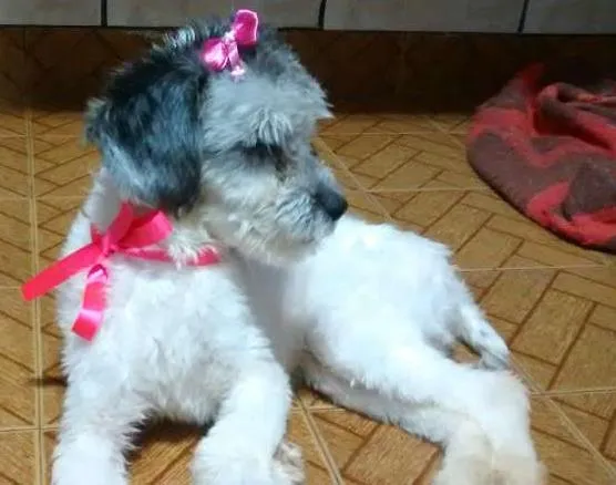 Ela e branca e preta os pelos são meios lisos pois ela é (cega não tem os olhos)mas tem muita saúde motiva pra doar não tenho tempo pra cuidar dela e ela presida de cuidado espesial