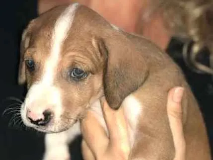 De uma cria de 7, 6 consegui doar e resta esse com pelagem curta marrom com manchas brancas e todas as 4 patas brancas. Cachorro muito ativo e esperto. Já foi dado duas doses de vermifugo.