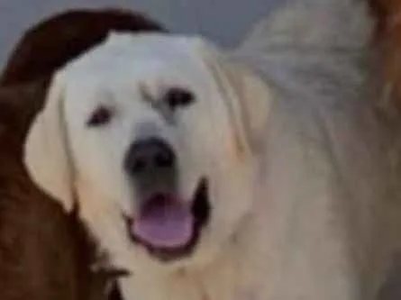 Um LABRADOR branco com cicatriz no lado esquerdo acima do olho ( atendi pelo
