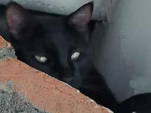 É todo pretinho, deve estar muito assustado.Apesar de ter 4 anos, era menor que um gato desta idade.