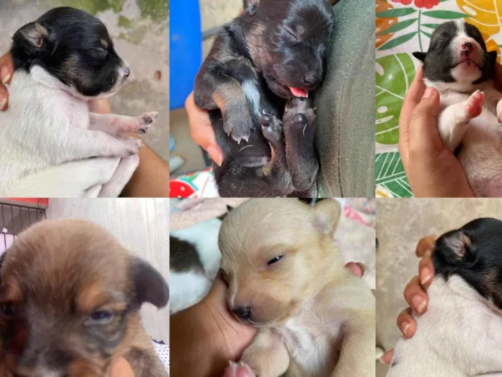 São 6 filhotinhos Pai e mãe são de raça misturada, já estão bem espertinho e comendo papinha.. não tenho condições de cuidar, pois já tenho 4 adultos e estou passando por um tratamento de saúde e infelizmente não estou com condições no momento.. quem tiver amor , carinho e responsabilidade de cuidar , entrar em contato.