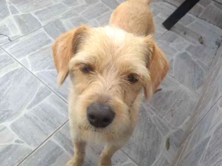Cadela encontrada ao lado do parque de Franco da Rocha, castrada, amarela de coleira vermelha. Acostumada a andar de carro.
