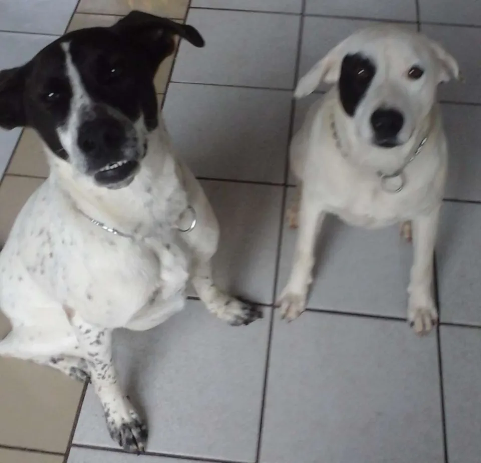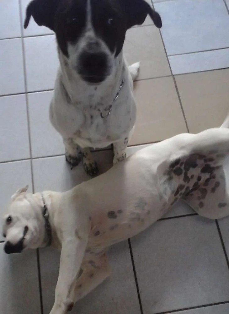 Branca(pirata- fêmea) e Lucky (máscara-macho), irmãos para ADOÇÃO URGENTE E RESPONSÁVEL (Preferencialmente conjunta), 1 ano, castrados, vacinados e vermifugados!!!
