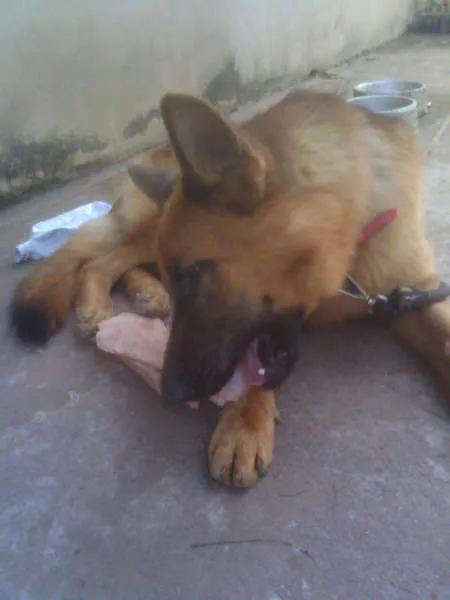 Estava caminhando e encontrei um pastor alemão ( Capa Preta ) Lindo, como AMO ESTE TIPO DE CACHORRO dei moradia a ele, pois o mesmo estava perambulando pelas ruas, com fome e sede, comendo tudo o que e tipo de porcaria.