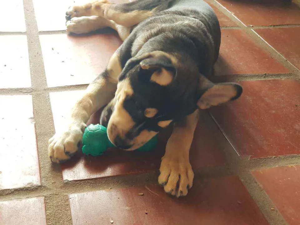 Sou o Dennis. Tenho quatro meses e meio e como podem ver, ficarei de porte médio / grande.