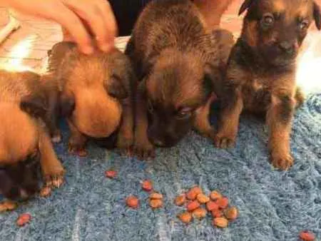 São oito filhotes( 4 Machos e 4 fêmeas), são mistura de raças ( pastor belga melinoas com uma lavradora), já possuo os pais mais um outro cachorro, não cabe mais filhotes no meu quintal