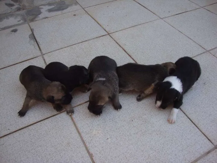 Doação de quatro filhotes, sendo eles: preto com pescoço branco (Fêmea), cinza acaramelado com faixa branca no peito e pescoço (macho), cinza acaramelado com fucinho preto (fêmea), cinza acaramelado com fucinho preto e mancha branca nas patas traseiras (fêmea), estão com 35 dias de vida,não estão vermifugados nem vacionados e nem castrados.