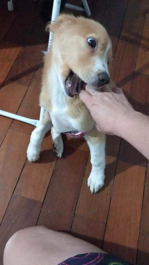 Encontramos esta cachorrinha abandonada em uma casa, estava doente, tratamos, vacinamos, vermifugamos esta bem cuidada porém não tenho como ficar com ela pois moro em apto pequeno,e tadinha fica sozinha e o objetivo naquele momento foi ajudar o sofrimento dela, gostaria de encontrar um lar feliz para ela.