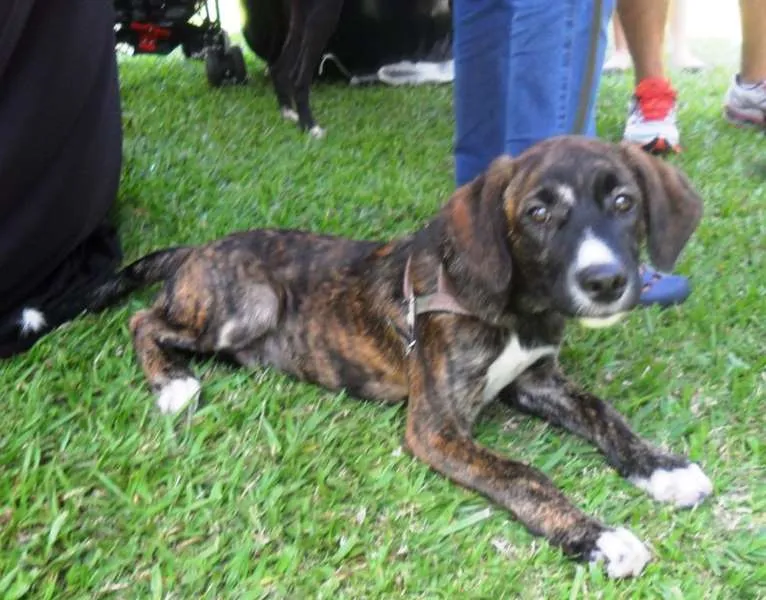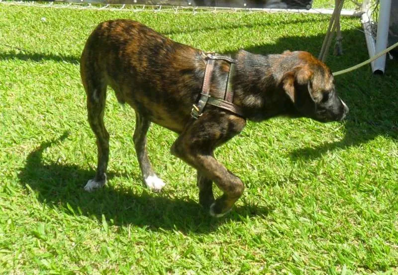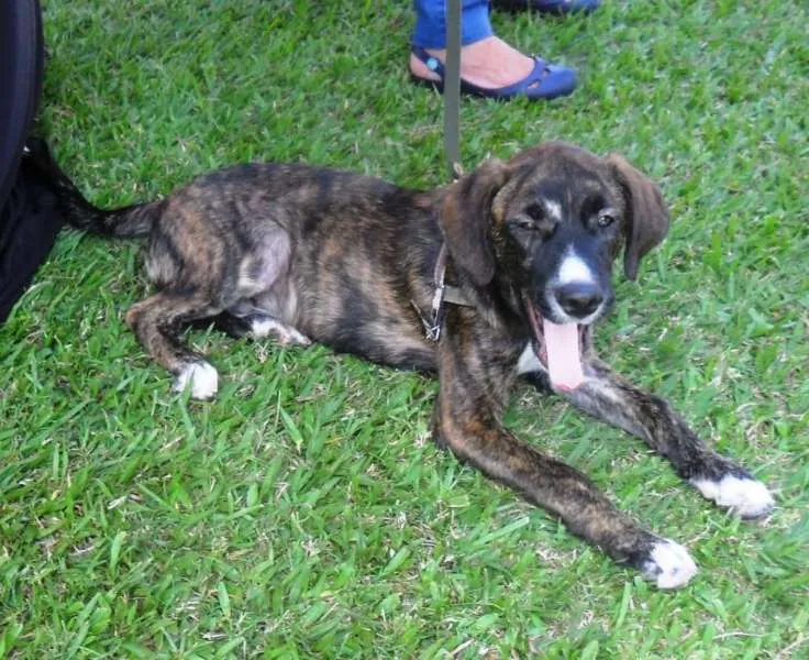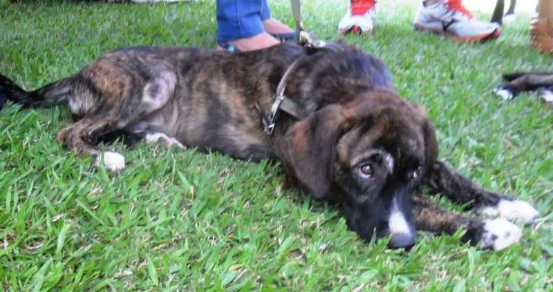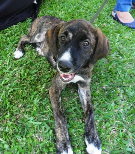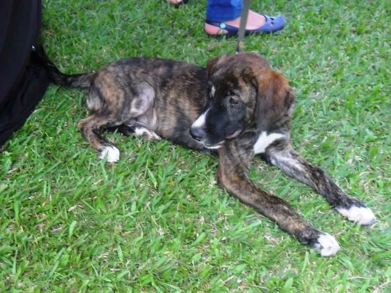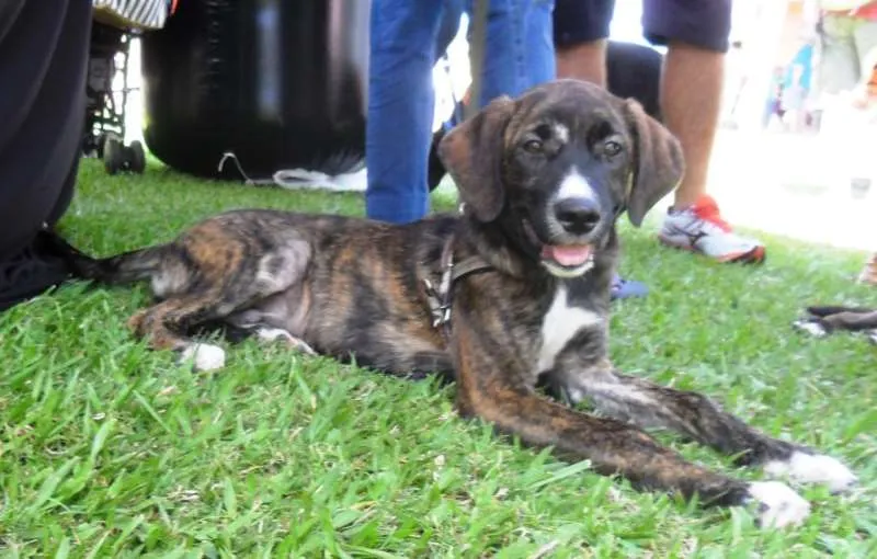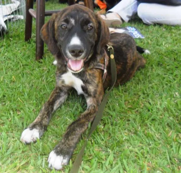 Thomas, mestiço de fila brasileiro, 4 meses, vacinado e vermifugado. Deverá ser castrado quando estiver com idade apropriada. Porte médio\grande. Muito brincalhão e ativo. Doamos só para moradores de Campinas.