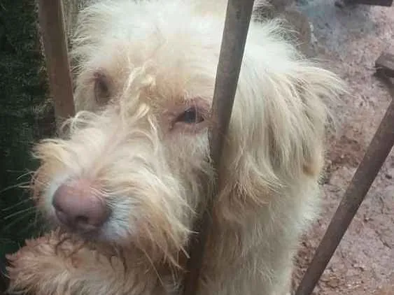 Cachorro dócil, amoroso, gosta de brincar é médio, pelos amarelos, olhos claros, bastante carente de atenção.