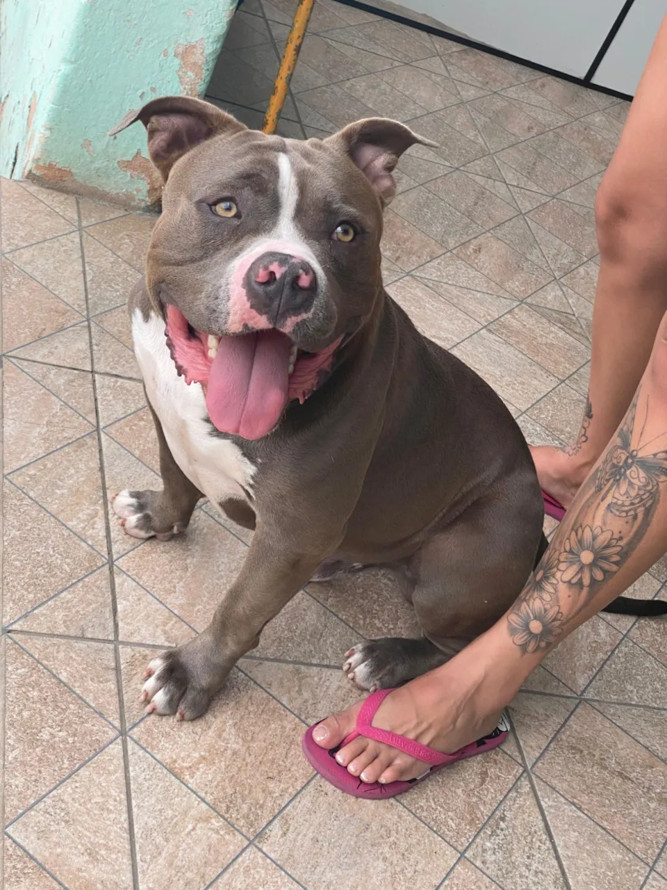Encontrado um cão macho da raça Pit-Bull, com pelagem cinza, de apenas 2 a 6 meses de idade e porte médio. Ele é vacinado e vermifugado, e possui um temperamento muito tranquilo e brincalhão. Esse peludo é sociável, tanto com conhecidos quanto com desconhecidos, e se adapta bem a ambientes com quintal. Seu comportamento independente o torna um ótimo companheiro para quem busca um amigo leal e divertido. Infelizmente, não posso ficar com ele e estou buscando uma nova casa. Se você está interessado em adotar um cãozinho saudável, cheio de vida e amor para dar, entre em contato. Ele merece uma família que lhe dê o carinho e a atenção que precisa. Ajude-me a encontrar um lar ideal para esse adorable cãozinho.
