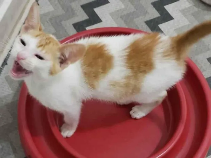 Adote Almôndega, um lindo gatinho SRD de 2 a 6 meses, que busca uma família. Se você quer um amigo fiel, entre em contato pelo WhatsApp.