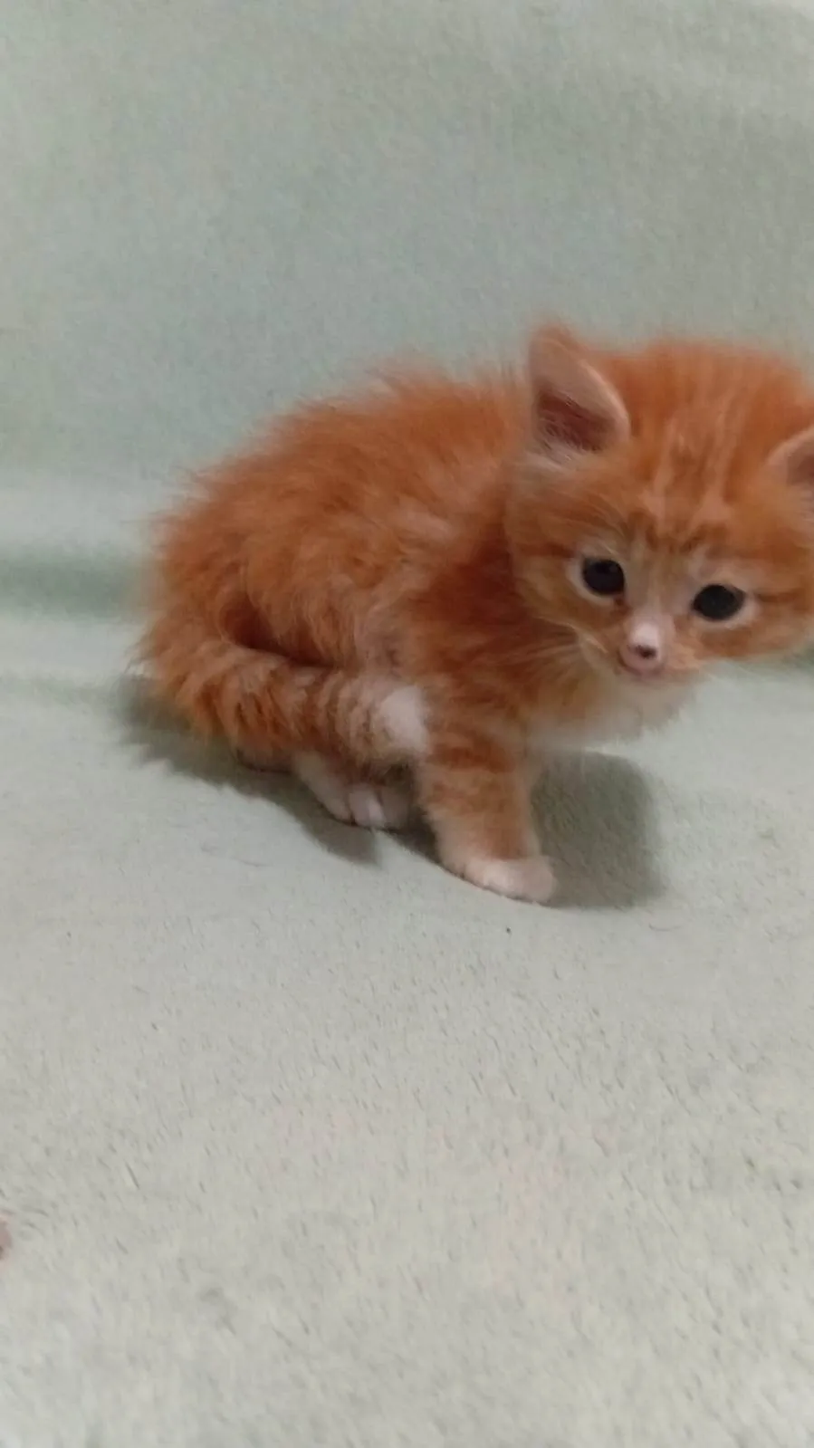 Este fofíssimo gato macho, chamado Bolinha, está à procura de um lar amoroso! Com apenas 2 meses de vida, ele é um adorável SRD-ViraLata de pelagem amarelo, porte pequeno e coração gigante! ??