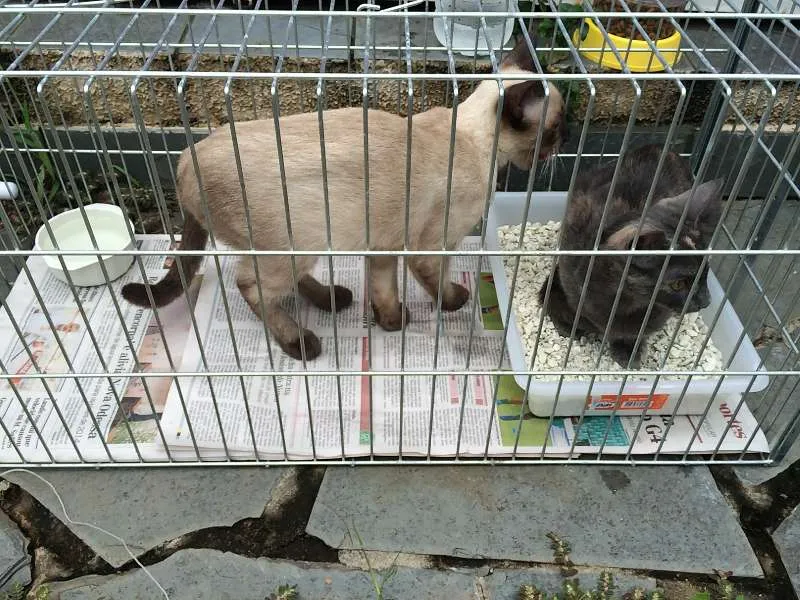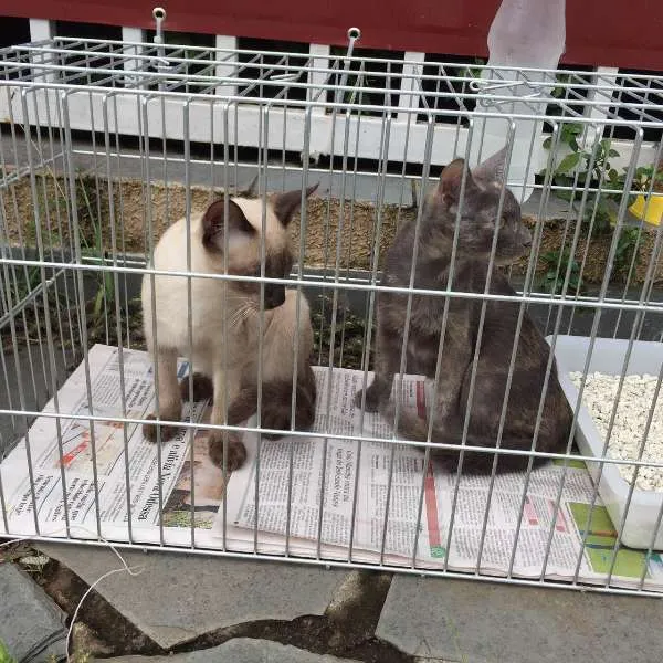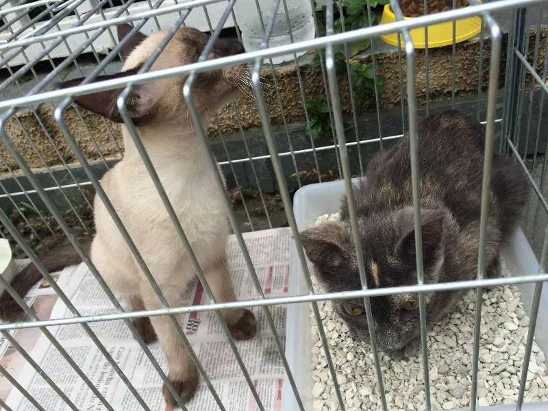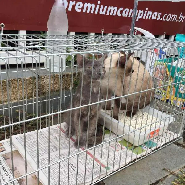 Esses dois gatinhos são irmãos, e já sofreram muito. A cinzinha é fêma e o siamês machinho. Vão ganhar castração. Estão com 04 meses de idade.