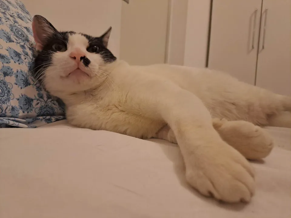 Ele é extremamente sociável e se dá bem com outros animais. Adora virar o barrigão pra cima e amassar pãozinho.