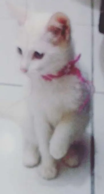 Encontrei perdida e faminta. Num ponto de ônibus. Tinha uma faixinha rosa em seu pescoço. Não posso ficar pq minha família é alérgica. Sem não encontrar um lar, volta pra rua :(