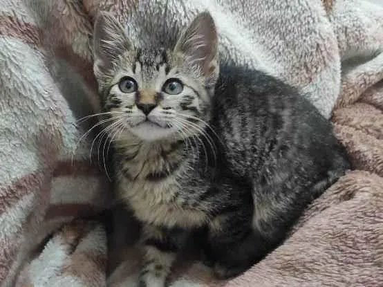 Encontrei essa gatinha na rua, aparentemente tem 2 meses, já foi vermífugada e tomou antipulga, não tem peso e idade suficiente para ser castrada, somente daqui 2 meses. Apelidamos de Juma