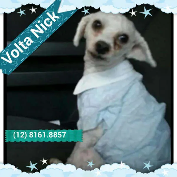O Nick sumiu na manhã do dia 23/09 testemunhas dizem terem visto um carro o pegando e entrando na dutra sentido São Paulo no km47. Estamos desesperados atrás dele, nos o amamos muito. Ele estava com a pelagem toda raspada, inclusive a cabecinha. Ele tem uma alergia constante nos olhos.