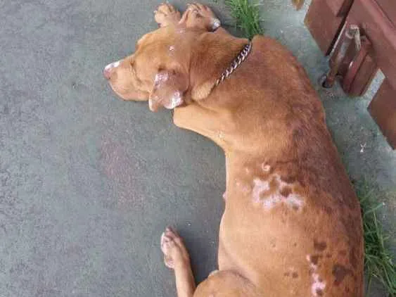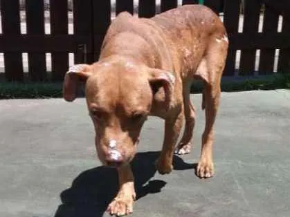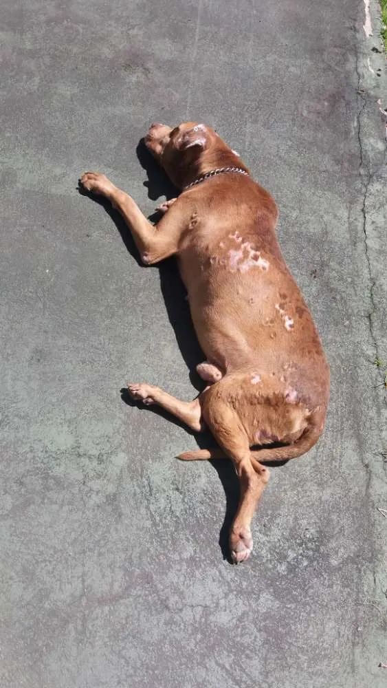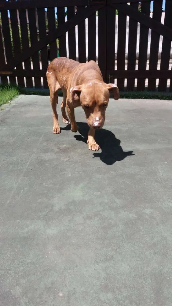 Ele tem aproximadamente 4 anos, foi abandonado pela dona que mudou do país e foi pego por uma pessoa que judiou dele.