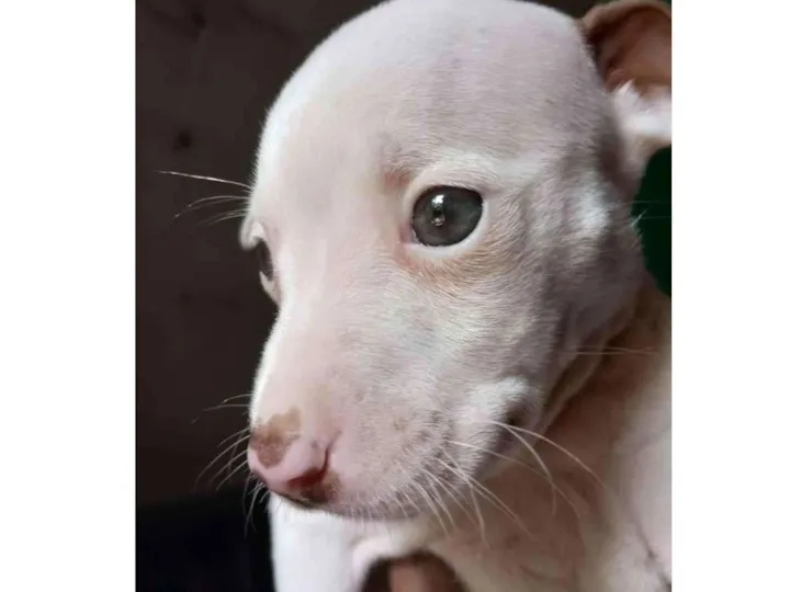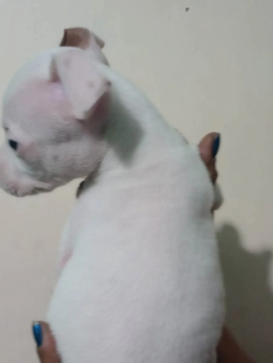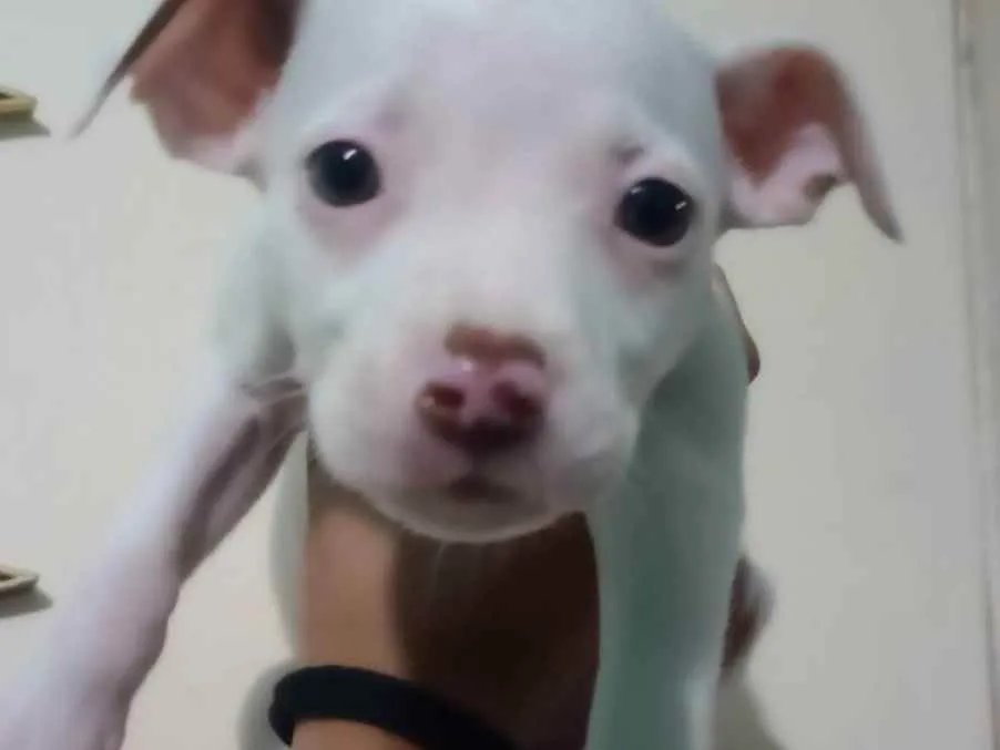 Linda é uma cachorrinha Pitbull misturado com Vira Lata, ela tem o olhos verdes e é branquinha, ela tem 2 meses, também já foi vermífugada
