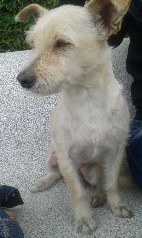 Nao sei que raça que é, o cachorro sempre fica aqui na rua, é muito fofo dócil, gosta de carinho , ele foi abandonada ou está perdido,mas acredito que esteja abandonado. Não posso pegar pra mim porque minha casa é pequena e já tenho dois cachorros. Ele fica na rua tremendo de frio, quero muito que alguém adote ele.