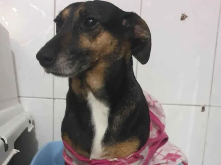 Resgatei essa cachorrinha porque ela estava prenha e no cio, os cachorros estavam atormentando ela na rua, peguei ela, cuidei, infelizmente ela perdeu os bebês porque estava muito doente e precisou tomar antibióticos.