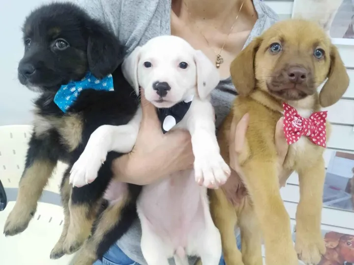A dedução pelo veterinário é que tenham 2 meses e que talvez cheguem a porte médio. Fizeram hemograma e serão vacinados. Estamos cuidando e precisam encontrar um família muito amorosa.