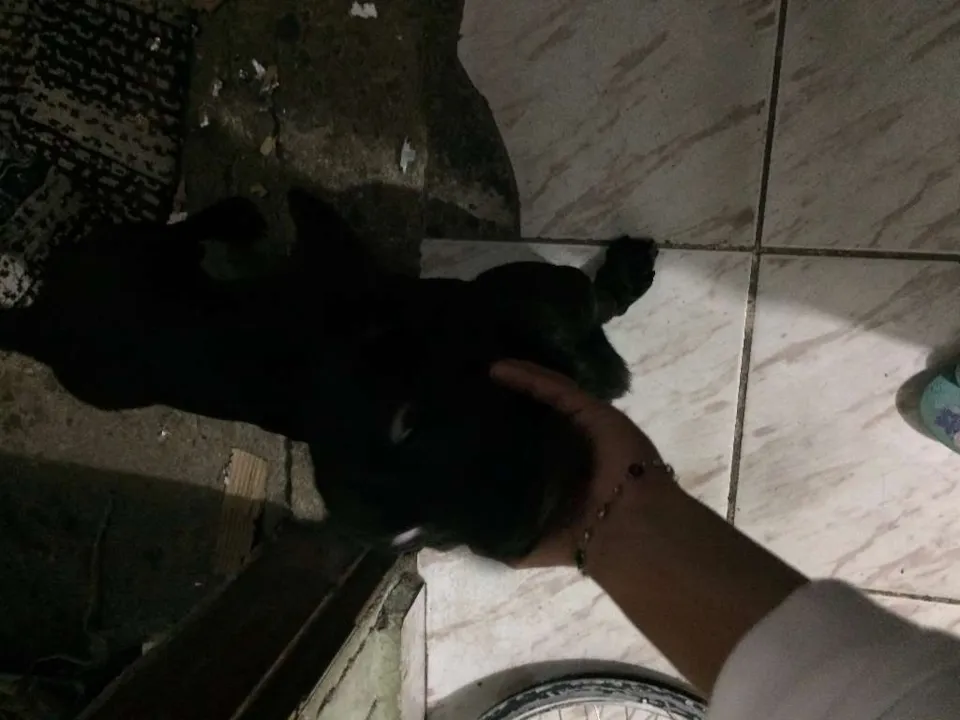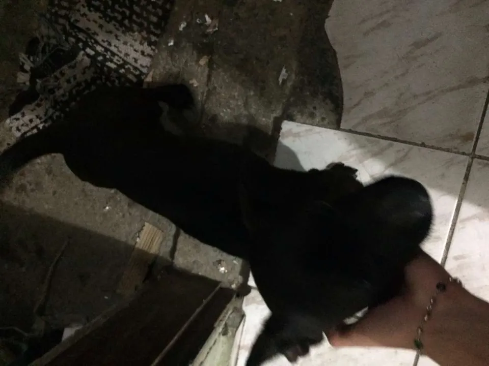Olá meu nome provisoriamente é Nego Drama, eu fui encontrado na porta de um salão de cabeleiro pela Priscila, a mais ou menos 1 mês e como ela já tem + 3 cachorros não posso ficar na casa dela.
